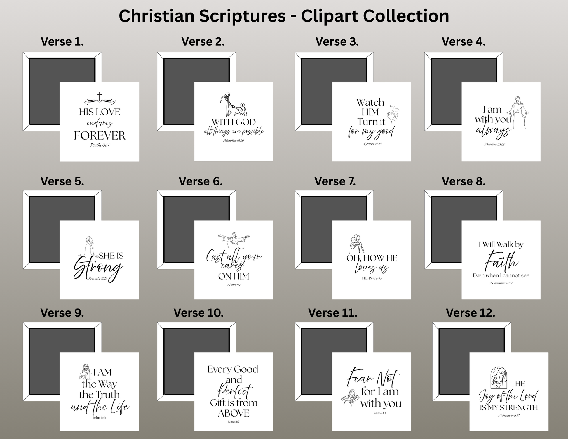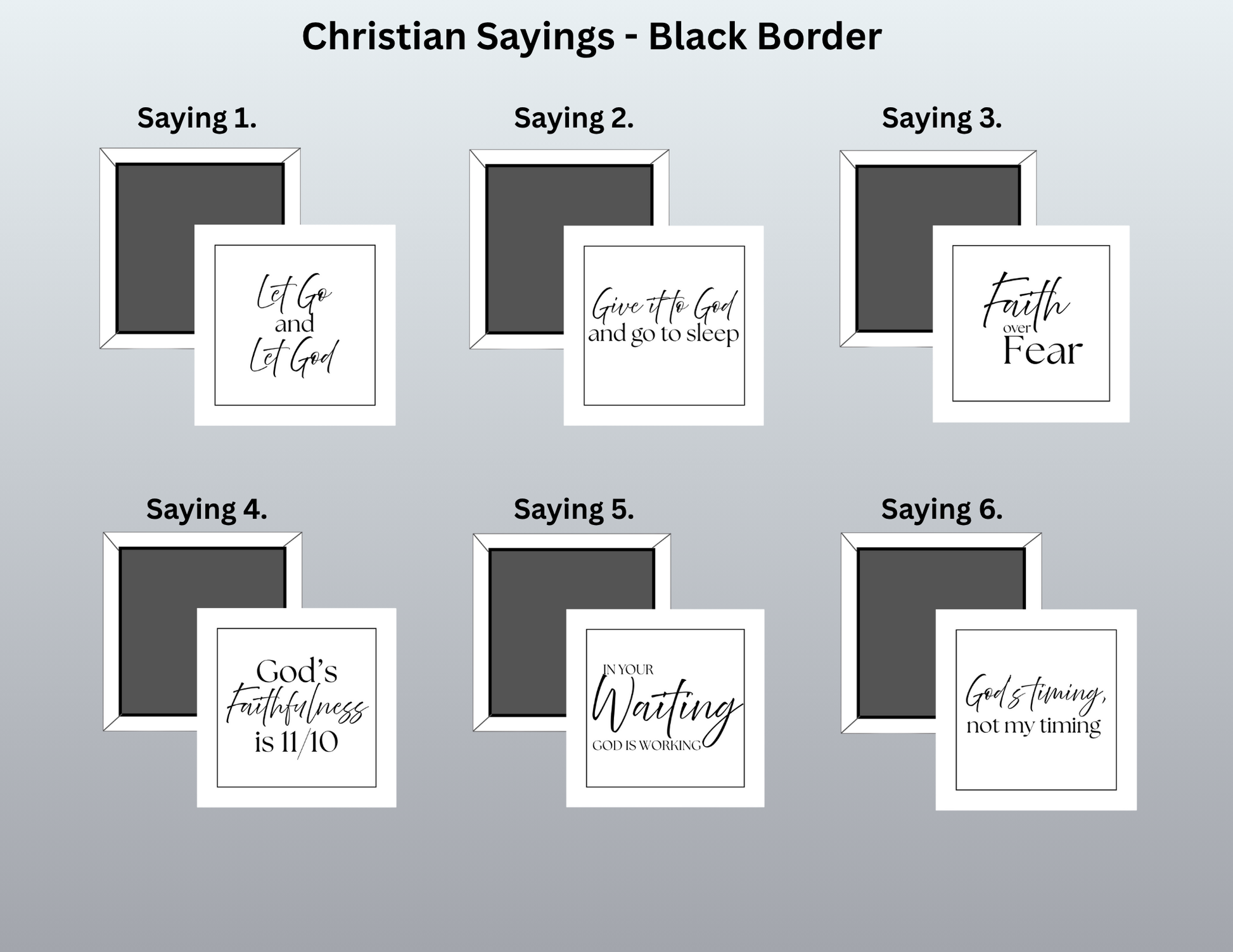 Each design style offers a unique look and feel — whether you prefer the soft artistic tones of Color Wash, the cheerful charm of Clipart, or the timeless simplicity of Black Border, every set is crafted to inspire faith and brighten your space.
