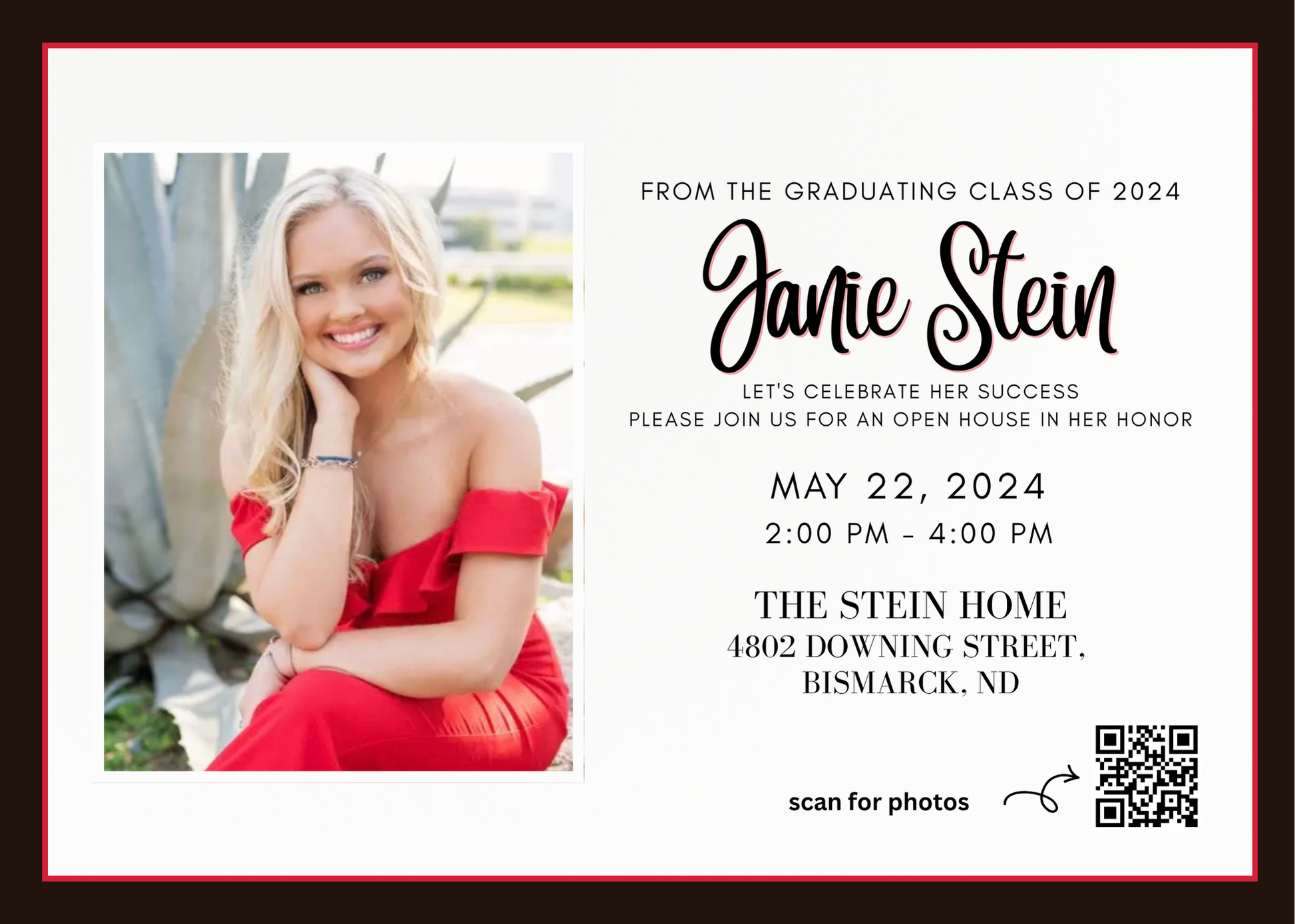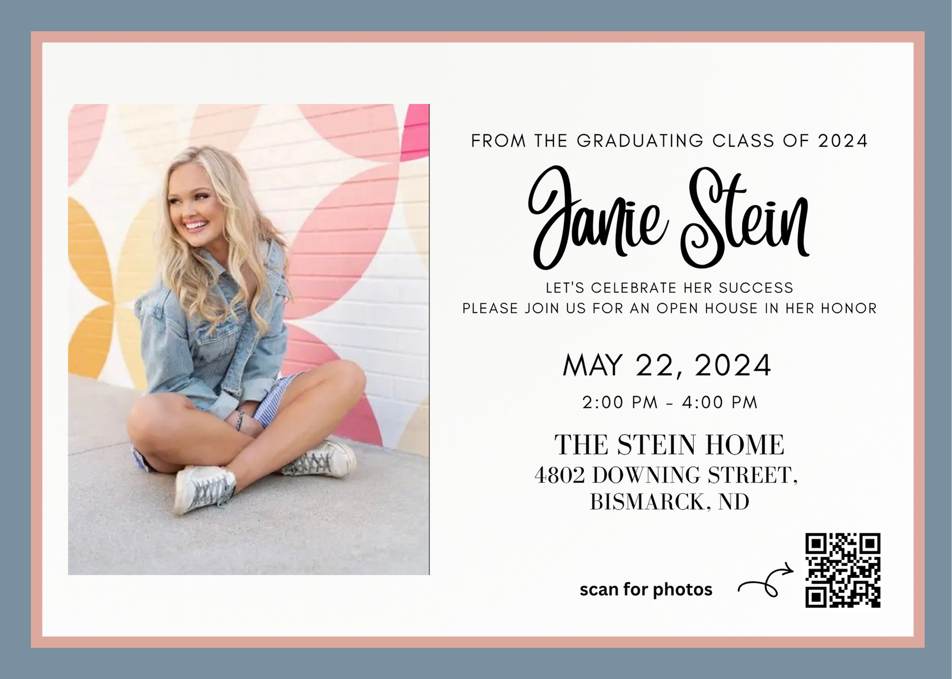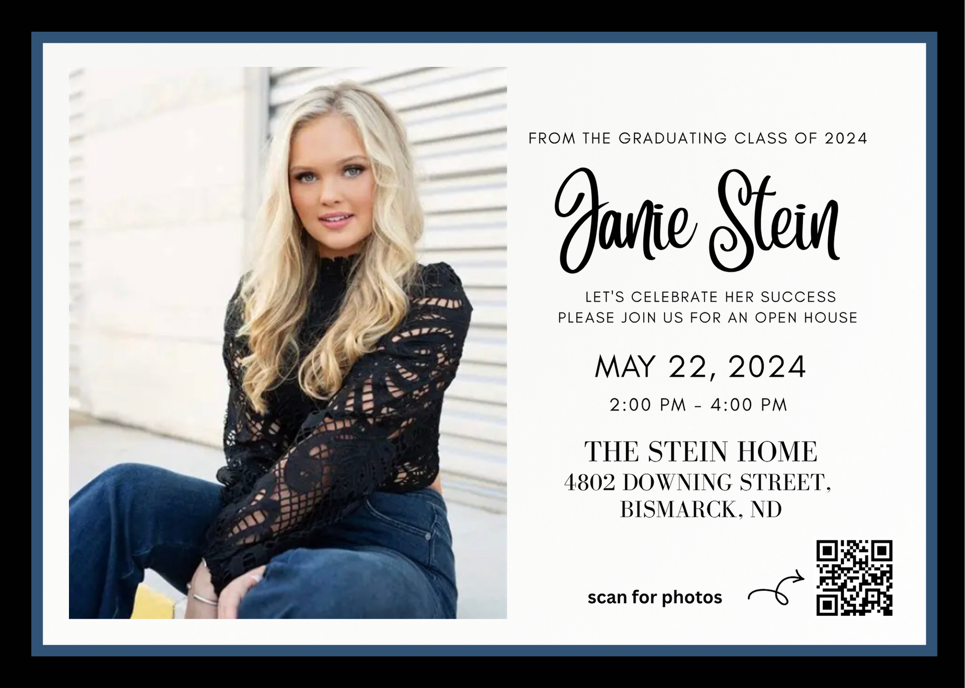 Each photo will include a dark border that coordinates with your photo. The same color will be used for the graduate’s name to create a cohesive, polished look.