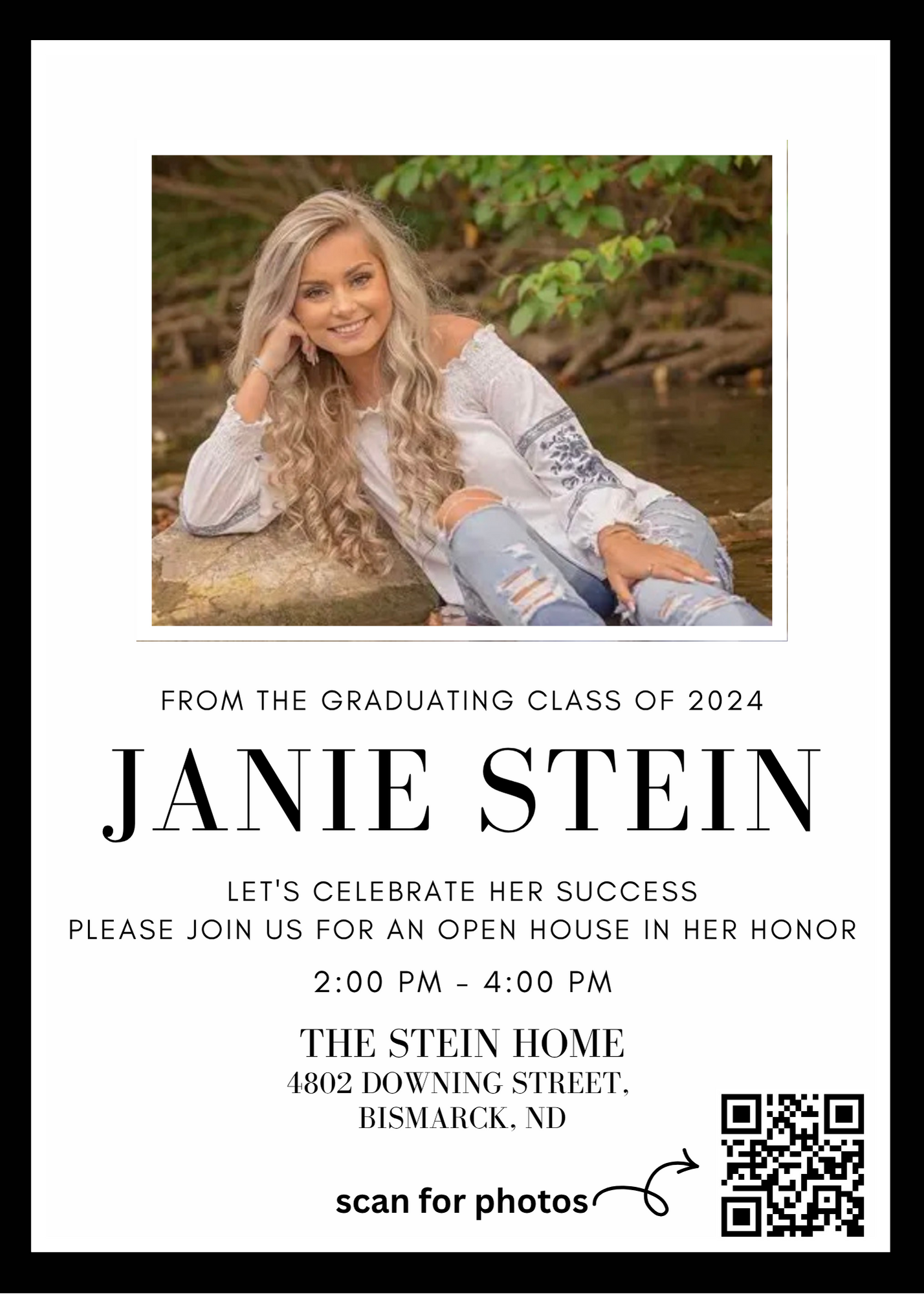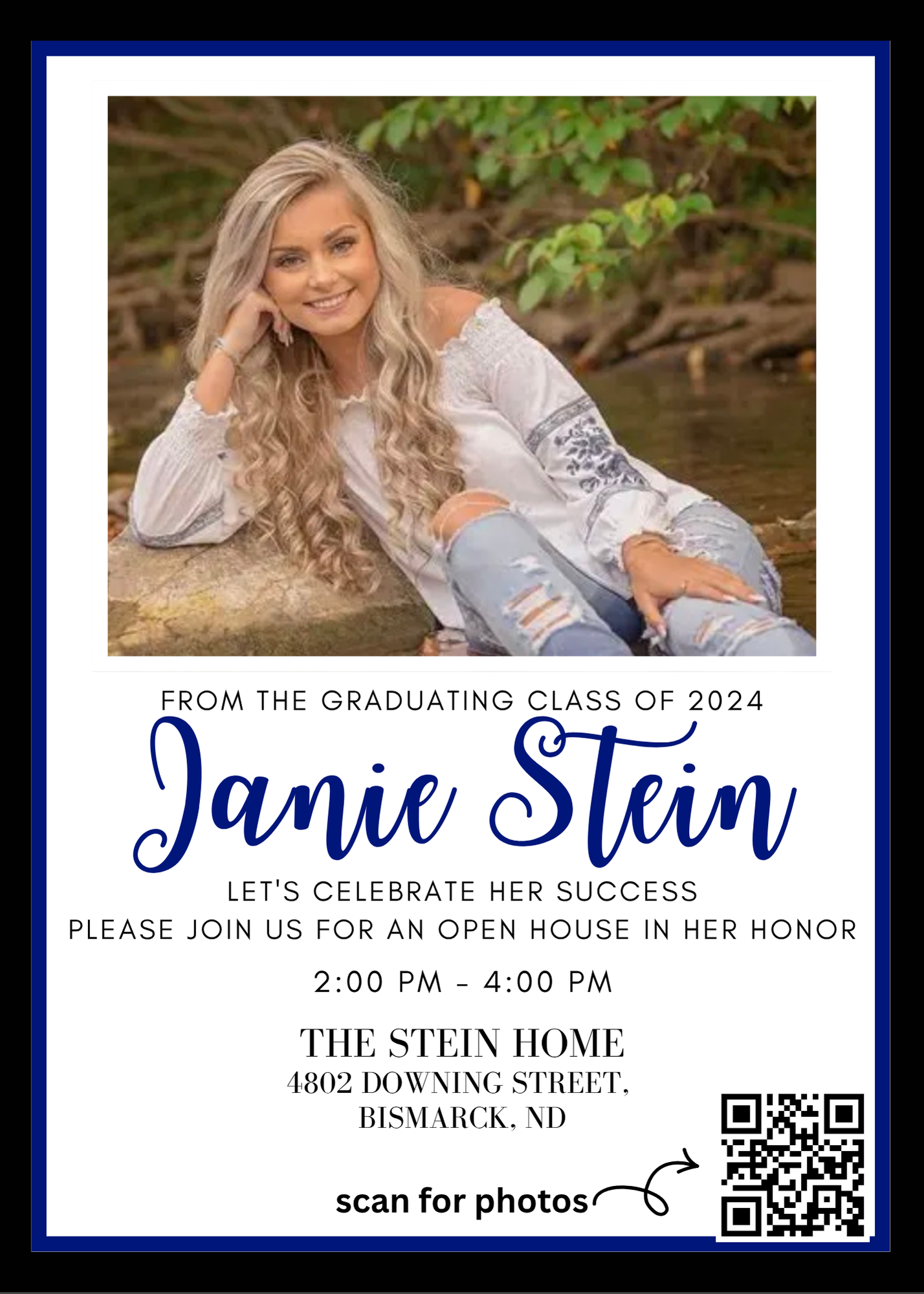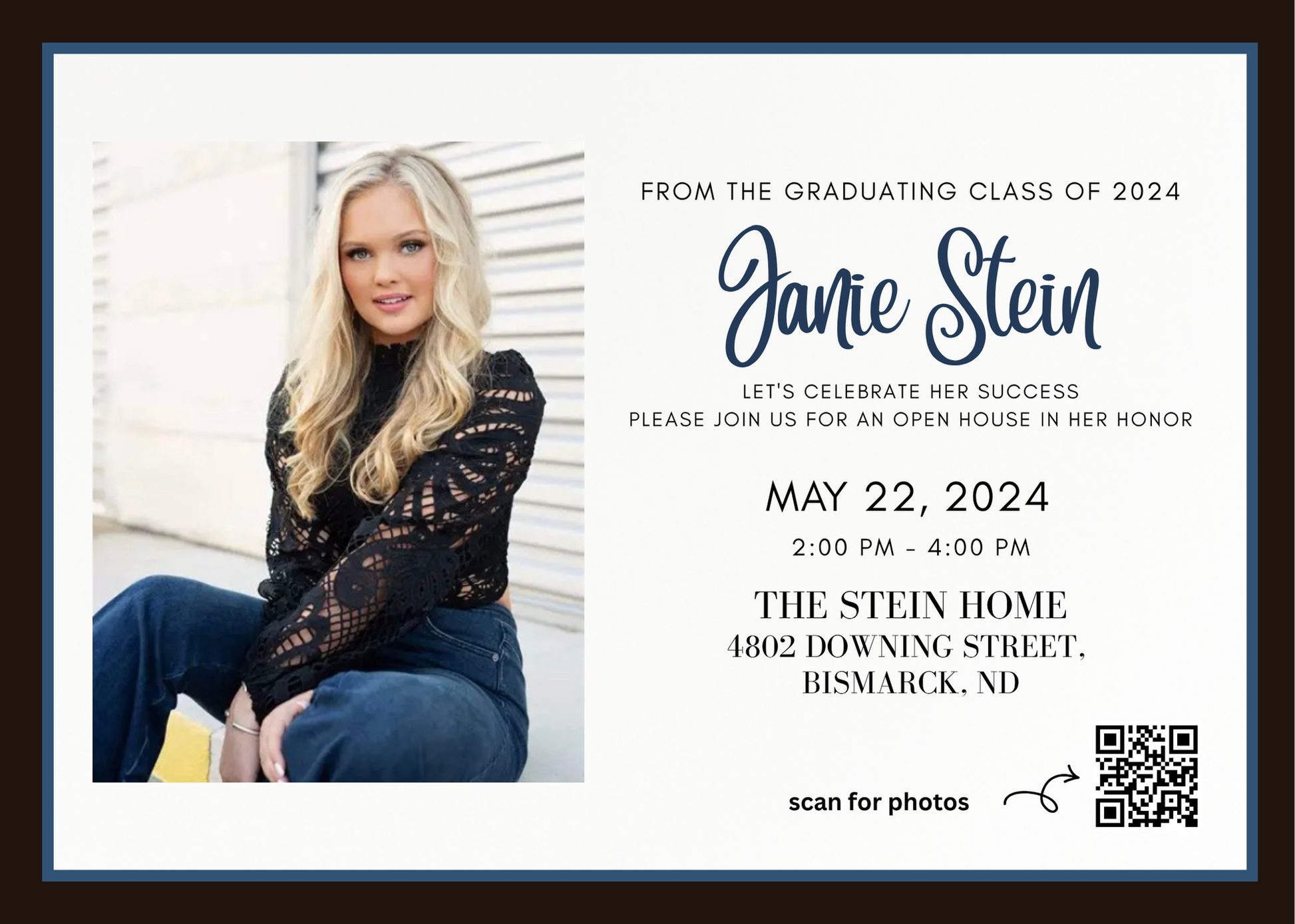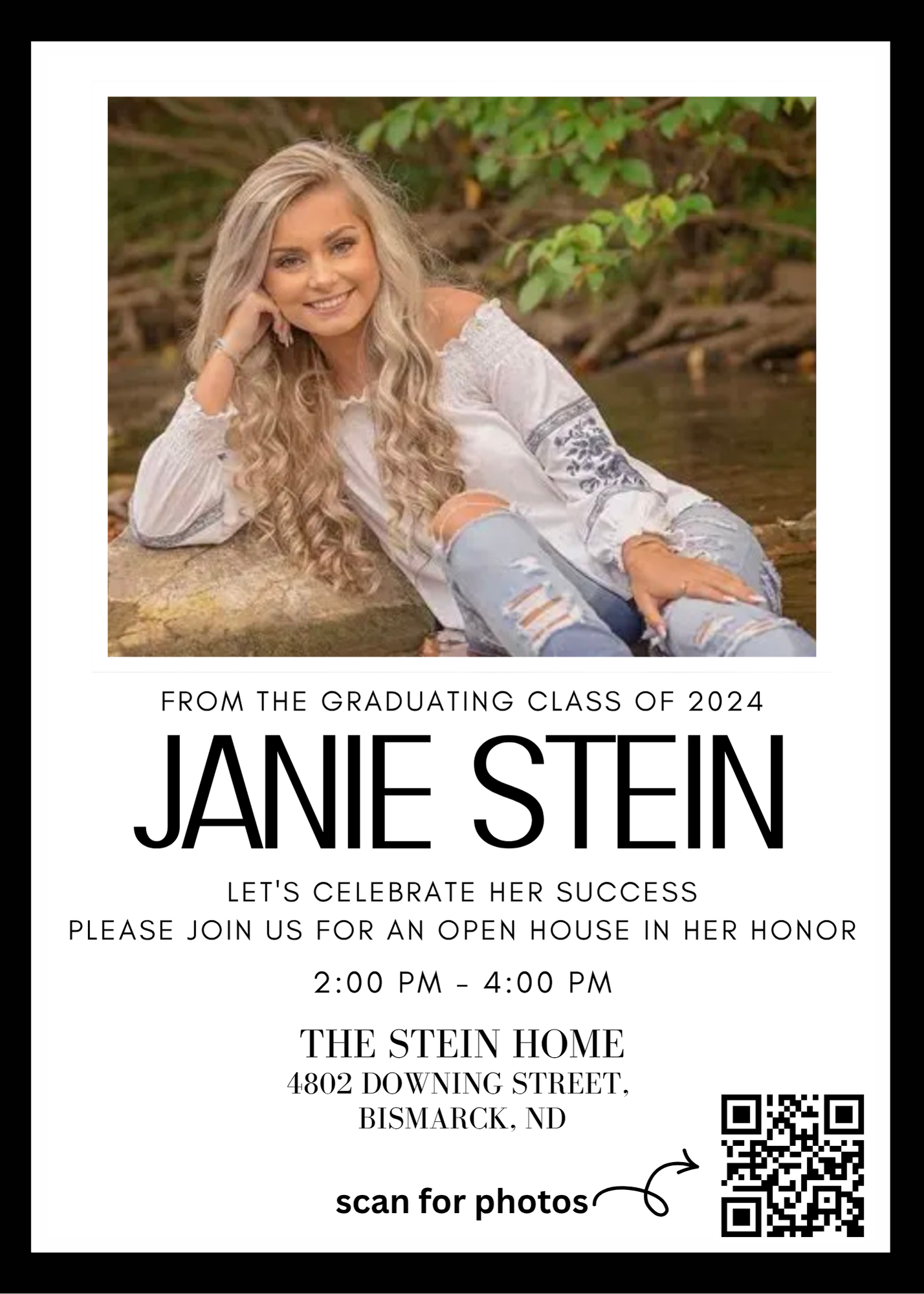 Each photo will include a dark border that coordinates with your photo. The same color will be used for the graduate’s name to create a cohesive, polished look.